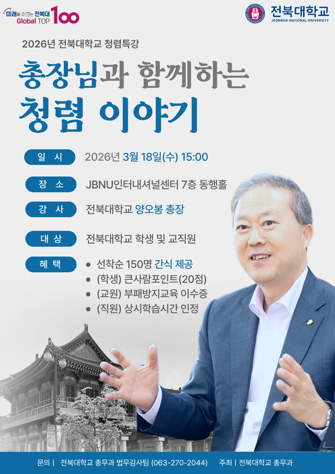 청렴특강「총장님과 함께하는 청렴이야기」참석 안내