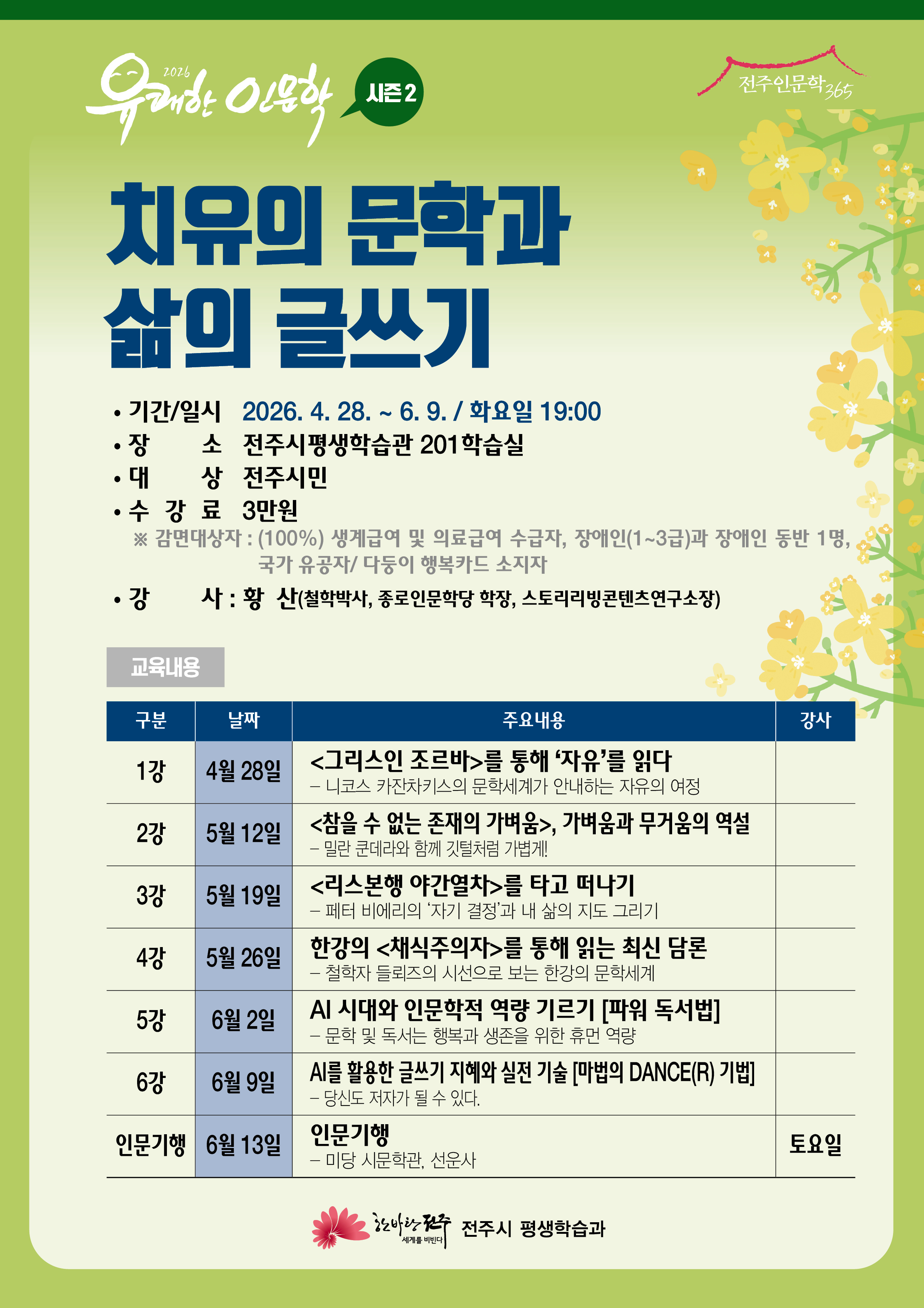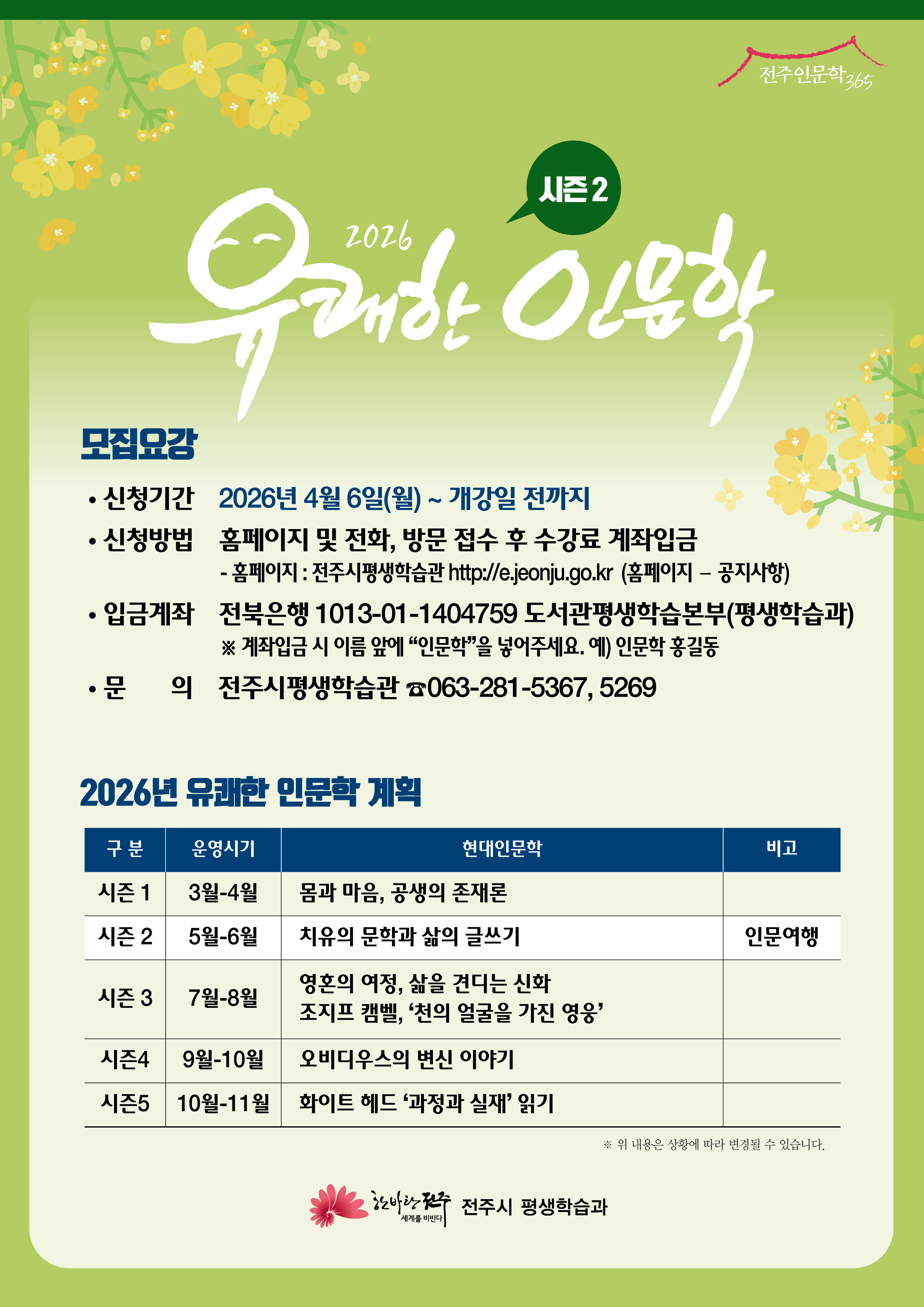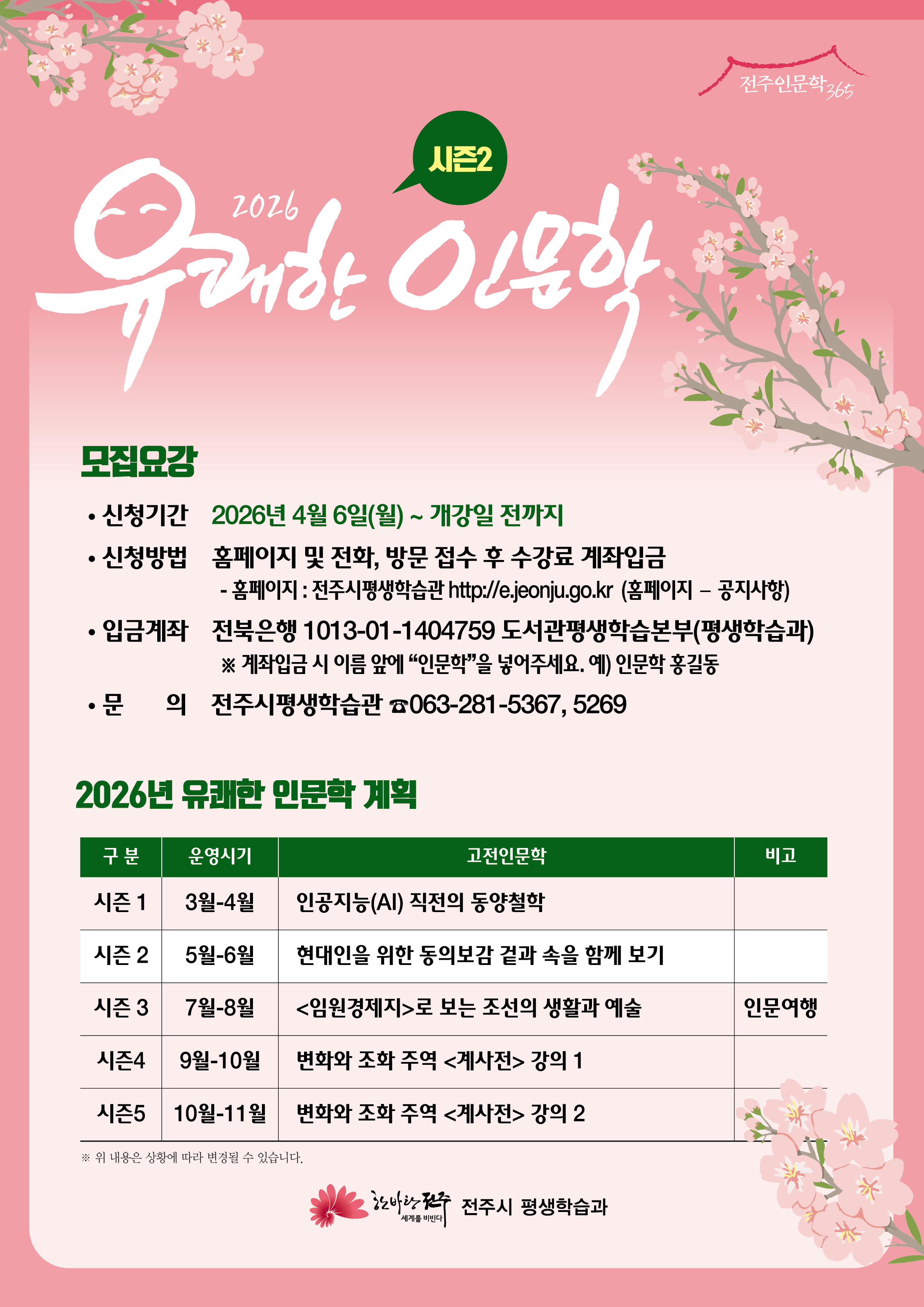 가. 강좌명: 2026년 유쾌한 인문학 시즌(2)
