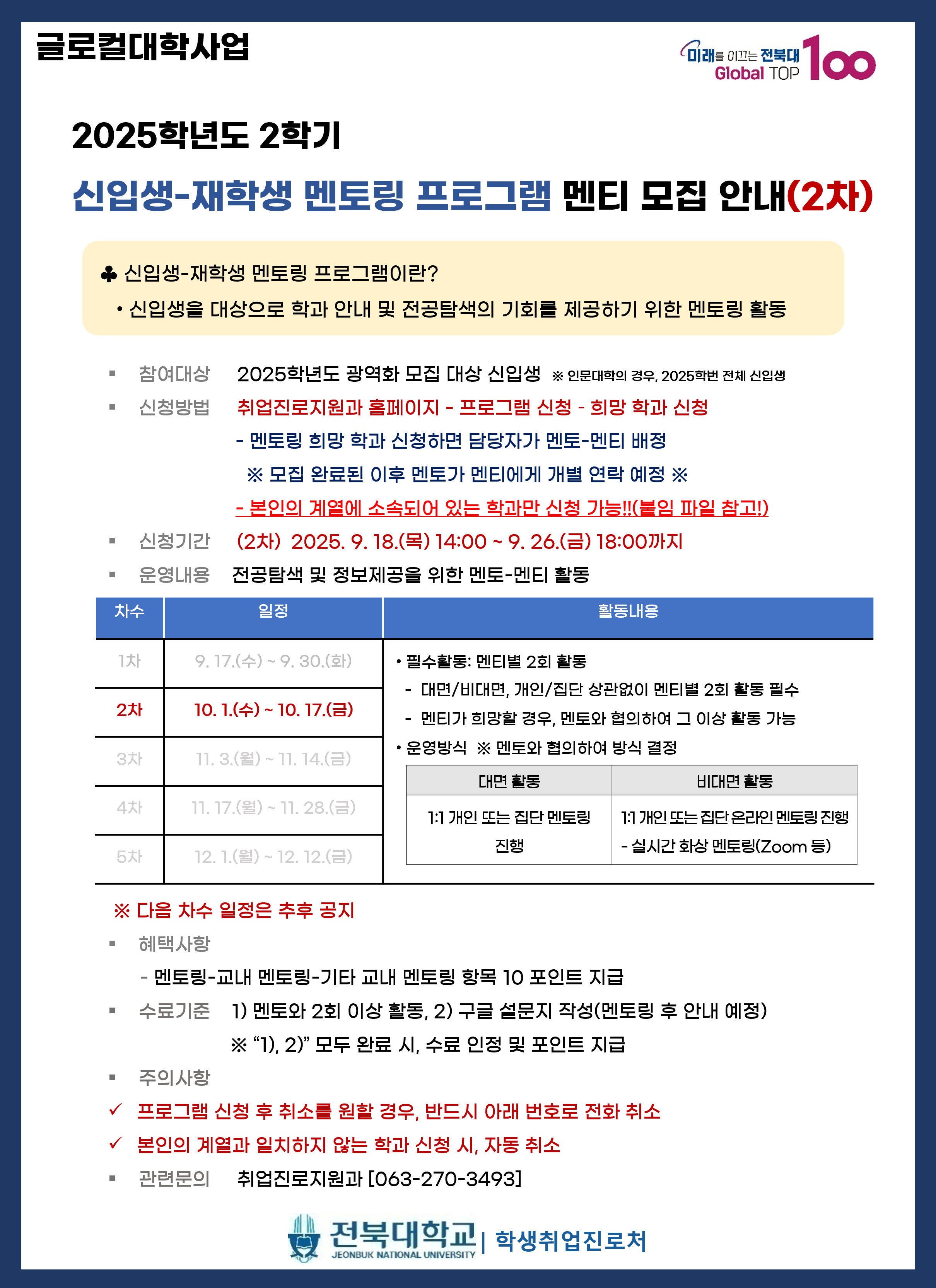 본 프로그램은 2025학년도 광역화 모집 대상 신입생에게 전공 탐색 기회를 제공하기 위해 개설된 멘토링 프로그램입니다.