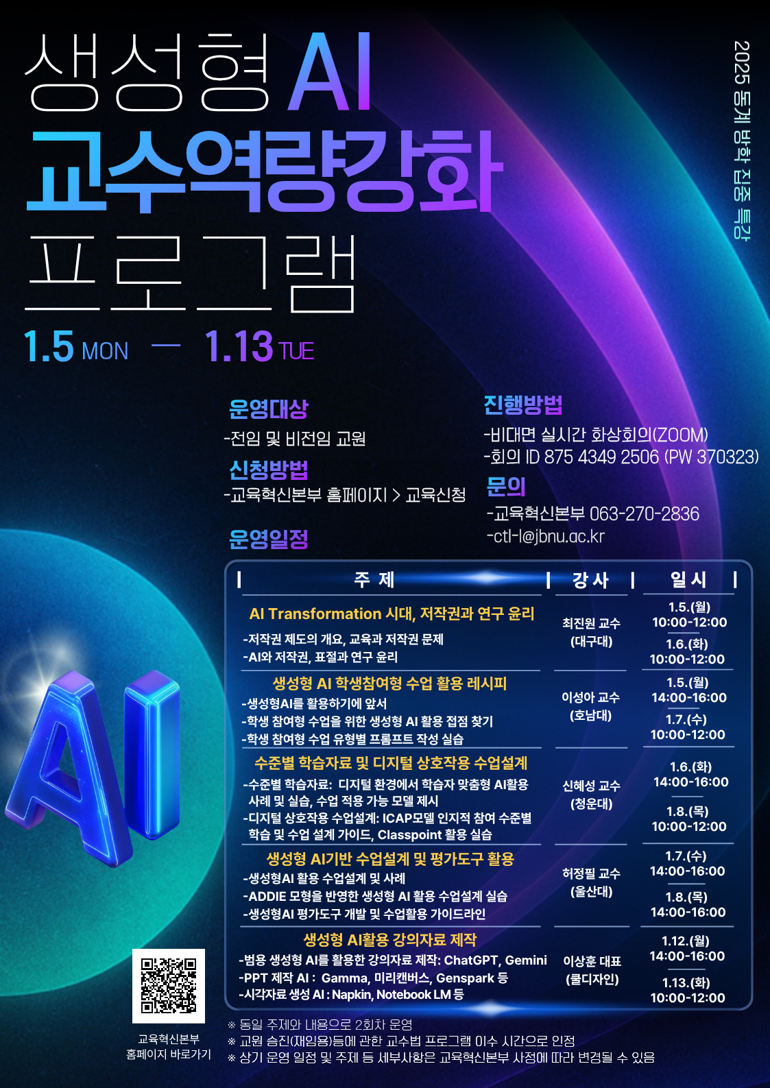 [교수법] 동계 방학 집중 특강<생성형 AI활용 교수 역량 강화 프로그램> 운영 안내