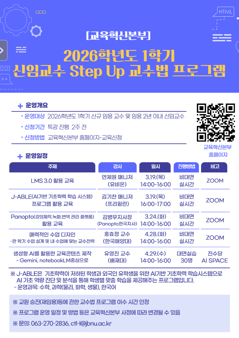 [교수법] 2026학년도 1학기 신임교수 Step Up 교수법 프로그램 운영 안내