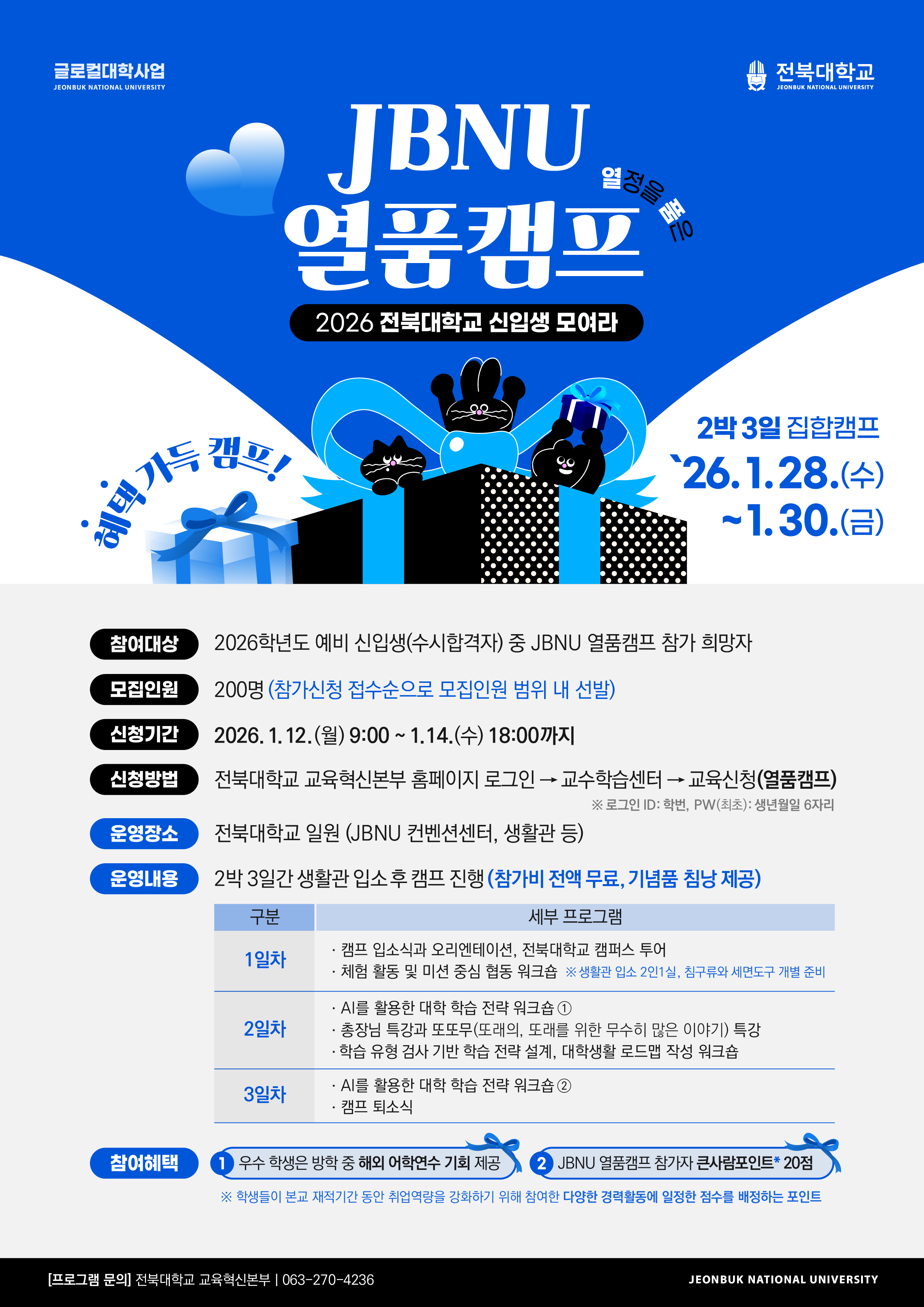 <2026학년도 신입생 JBNU 열품캠프 운영 안내>
