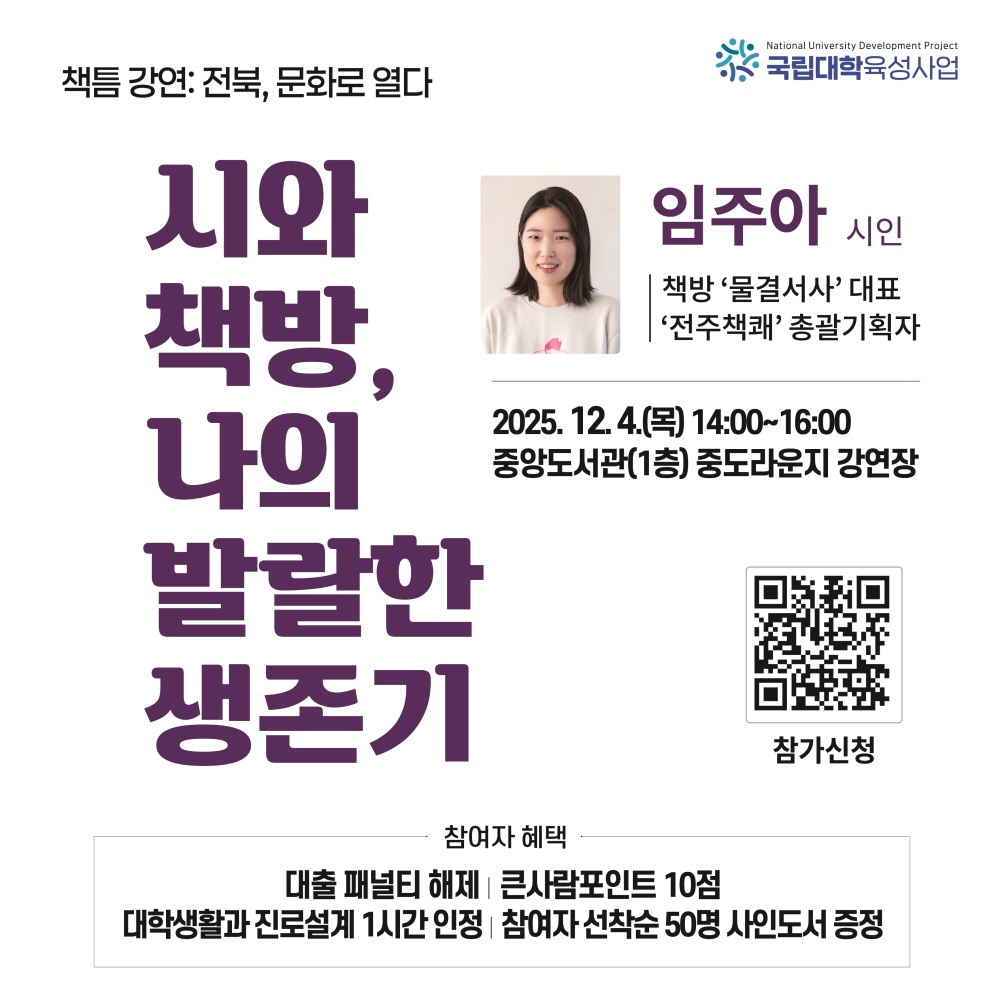 [국립대학육성사업] 전북대학교 중앙도서관 임주아 시인의 '시와 책방, 나의 발랄한 생존기' 강연 안