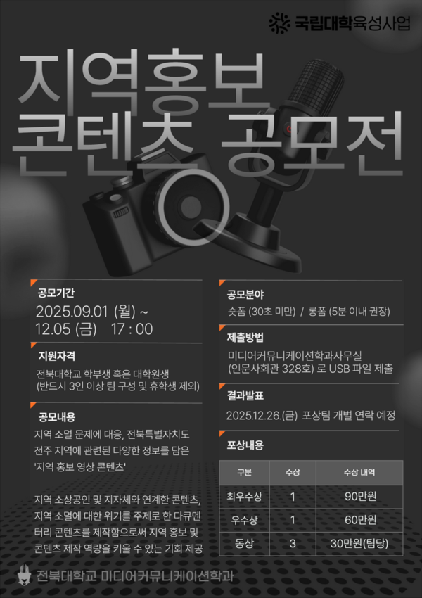 [국립대학육성사업] 전북대학교 미디어커뮤니케이션학과 지역 홍보 콘텐츠 공모전 안내