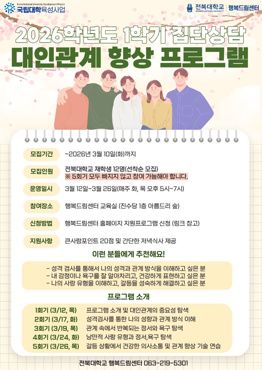 [국립대학육성사업] 전북대학교 행복드림센터 대인관계 역량향상 프로그램 신청 안내