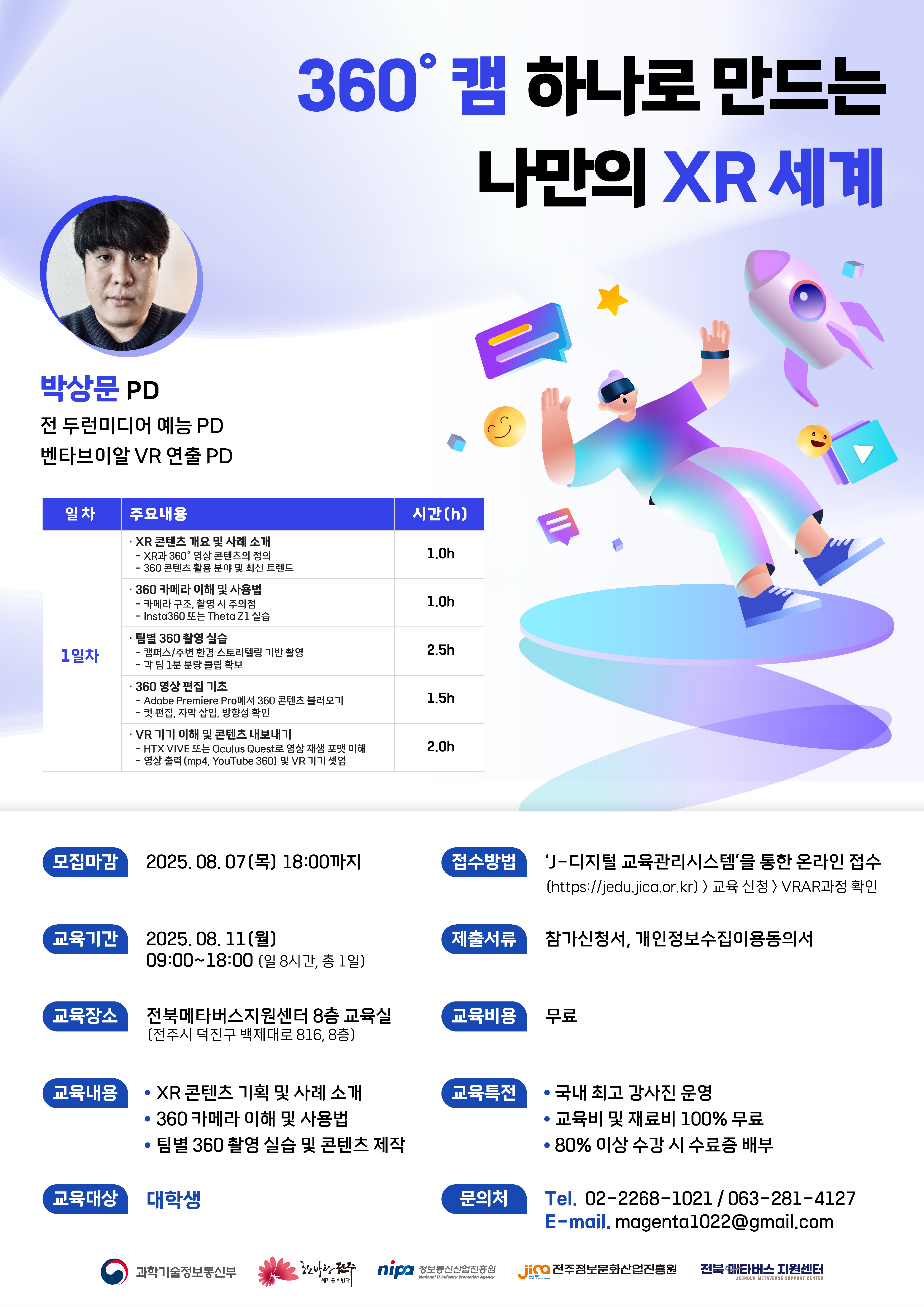 - 주요 강사: 박상문 PD (前 두런미디어 예능 PD / 現 벤타브이알 VR 연출 PD)